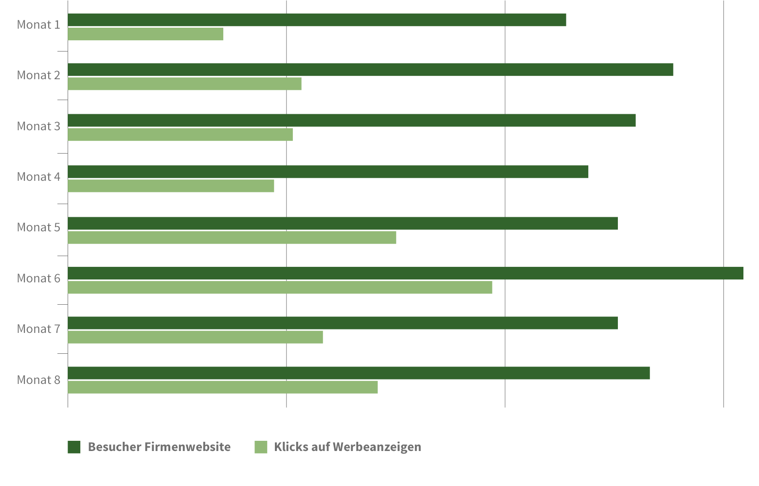 In Folge wurde eine kosteneffiziente Kampagne konzipiert. Durch die anschließende Schaltung von Werbeanzeigen über Google Ads konnte bei relevanten Suchbegriffen eine deutlich höhere Sichtbarkeit erzielt werden. Im Rahmen der fortlaufenden Kampagnenoptimierung konnten verstärkt Anfragen und Kontakte generiert und somit Neukunden gewonnen werden.